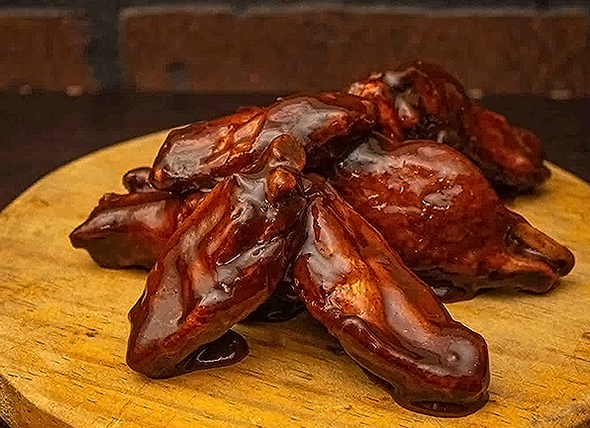 Alitas (8pzs) bañadas con Salsa: BBQ Picante ó Picositas ó Pimienta Limón + Papas a la Francesa (150gr) + 1 Refresco de 355ml.